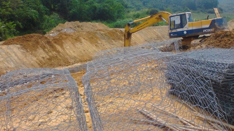 格賓石籠可用于堤岸防護,或者對整個河床及河岸進行防護,上部為護坡工程,下部為護腳工程,比較適合原始岸坡較緩的河道。以設(shè)計枯水位為界,護坡工程是對原始岸坡進行修整處理后再鋪設(shè)護坡反濾層及生格賓石籠網(wǎng)墊結(jié)構(gòu)面層,以防止水流沖刷、波浪沖擊、水位變化和地下水外滲侵蝕等對岸坡表面的破壞;格賓石籠護腳工程則采用抗沖材料鋪設(shè)于坡腳附近水下河床,形成保護層,防止水流淘刷,達(dá)到保護堤岸根基的目的。格賓石籠的優(yōu)點是生態(tài)性,其內(nèi)部充填的是天然石料,石料之間有間隙,允許植物在其中生長,還可以有針對性地播種合適的植物,具有工程護坡與植物護坡的雙重功效。