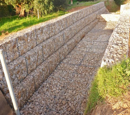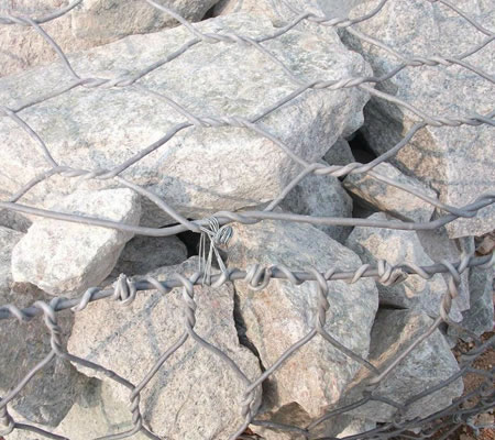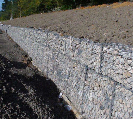 1、利用格賓網制作成長方形箱體內填裝石料,分層堆砌,各箱體用扎絲連接,整體性好。