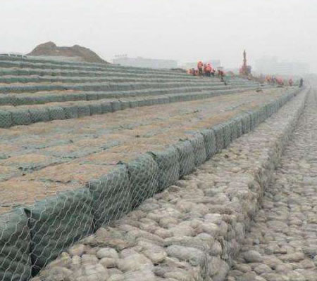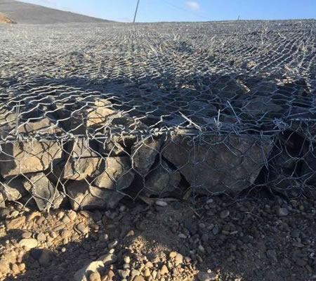 采用六角形雙絞合專用機(jī)器編織成形,*后經(jīng)人工握邊、組裝,打包壓縮,運(yùn)輸?shù)焦こ讨付ǖ攸c(diǎn)。在眾多水利工程項(xiàng)目中網(wǎng)孔在::60*80mm 、