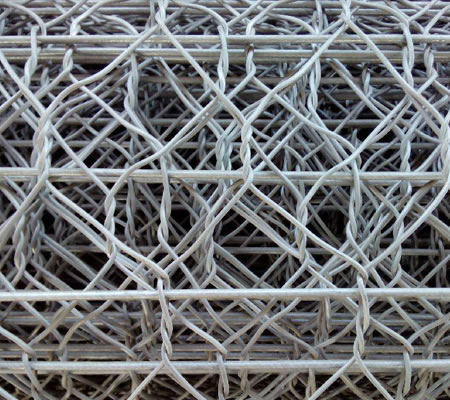 (4)鋅-5%鋁-混合稀土合金鋼絲包塑:在鋅-5%鋁-混合稀土合金鋼絲的表面包*層PVC保護層,再編織成各種規格的六角網。這層PVC保護層將會大大增加在高污染環境中的保護,并且通過不同顏色的選擇,使其能和周圍環境融合。